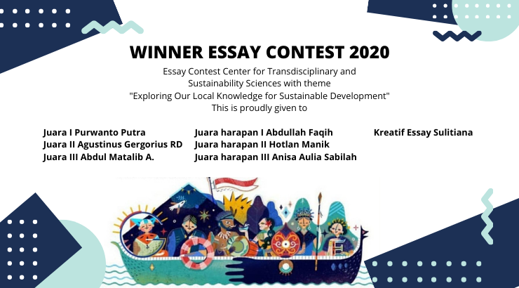 Pada tanggal 14 Februari 2020 pukul 16.00-19.00 WIB penjurian kontes essay telah selesai dan hasil telah diputuskan bersama Prof. Dr. Husin Alatas, S.Si., M.Si, Dr. Ir. Neviaty P. Zamani, M.Sc dan Dr. Ir. Rilus A. Kinseng, MA. Maka dari itu untuk pemenang Essay Contest yang bertema “ Exploring Our Local Knowledge For Sustainable Development adalah sebagai berikut: